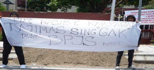 “Untuk Disnaker (Dinas Tenaga Kerja) mohon bisa memberikan penjelasan karena terjadi selisih data dengan apa yang kami terima dari BPJS Ketenagakerjaan,” kata Revi Pandega, melalui pidato orasi.