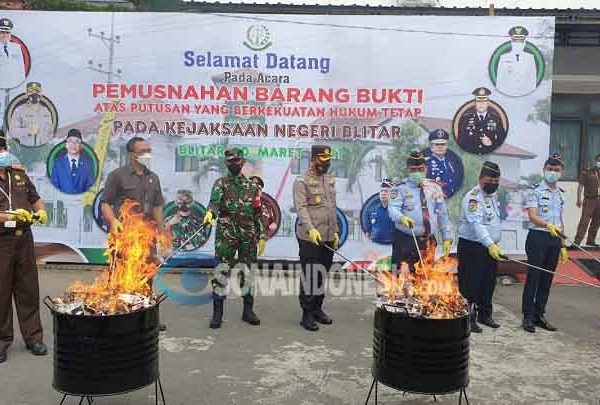 Blitar, SonaIndonesia.com – Kejaksaan Negeri Blitar memusnahkan barang bukti sitaan yang sudah mempunyai kekuatan hukum tetap (incracht). Ribuan barang bukti sitaan tersebut dimusnahkan di halaman belakang Kantor Kejaksaan Negeri Blitar, Selasa (30/3/2031).