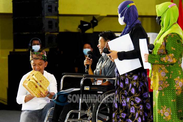 Bahlil sempat berdiskusi dengan penerima NIB. Salah satunya Rudi Hartono warga Genteng. Rudi yang seorang disabilitas memproduksi tas parcel dan tisu yang dibuatnya sendiri.