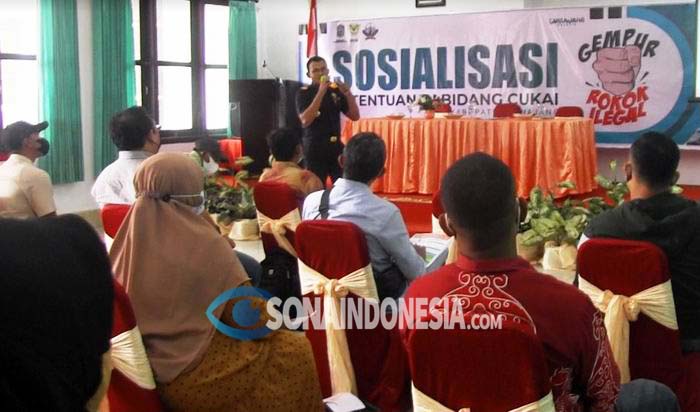 Lumajang, SonaIndonesia.com – Maraknya peredaran rokok ilegal di wilayah Kabupaten Lumajang membuat petugas Kantor Bea Cukai Probolinggo bersama Dinas Komunikasi dan Informatika Lumajang menggencarkan sosialisasi ketentuan cukai, salah satunya digelar di Hall Hotel Prima Jl. Soekarno Hatta, Desa Kutorenon, Sukodono Lumajang, Senin (1/11/2021).